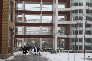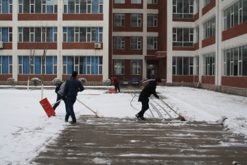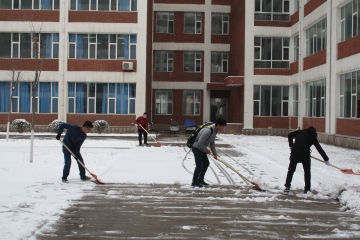 2月21日夜,我市突降大雪,给师生员工出行造成不便。化学化工公司立即启动特殊天气应急预案,安排师生按照责任区域展开清雪工作。参与清雪的教职工及员工不怕苦、不怕累、顶风冒雪、共同协作,完成了责任区内的清雪工作。22日清晨,公司师生提前取来清雪工具,有序地来到各自的劳动区域,开始清雪工作。面对厚厚的冰面,老师和同学们充分发扬了吃苦耐劳、顽强拼搏的精神,大家团结协作,干劲十足,分工明确,极大的提高了工作效率。在公司师生共同努力下,公司8教、9教、10教周边道路及楼间广场厚厚的积雪基本清理干净,确保了校园道路的畅通无阻,为师生安全出行提供了保障。