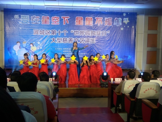 演出伊始,屏幕上播放的短片介绍了自闭症儿童的现状及金钥匙儿童康复中心的概况,使更多的人了解了自闭症儿童与金钥匙儿童康复中心。公司志愿者团队的歌伴舞《星星的孩子》,以优美的旋律,轻柔的舞姿向观众们表达了不歧视、不嘲讽“星星的孩子”的愿望以及对自闭症儿童能够像正常孩子一样生活的美好祝福。