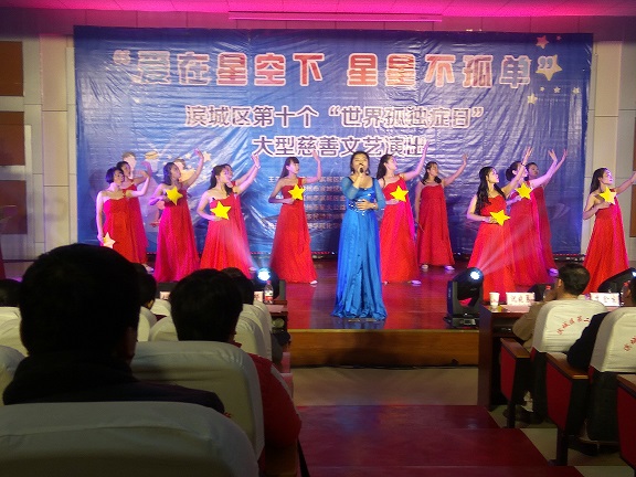 演出伊始,屏幕上播放的短片介绍了自闭症儿童的现状及金钥匙儿童康复中心的概况,使更多的人了解了自闭症儿童与金钥匙儿童康复中心。公司志愿者团队的歌伴舞《星星的孩子》,以优美的旋律,轻柔的舞姿向观众们表达了不歧视、不嘲讽“星星的孩子”的愿望以及对自闭症儿童能够像正常孩子一样生活的美好祝福。