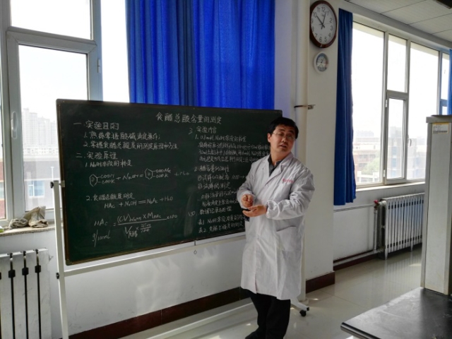 4月19日上午10点,范传刚副教授在10教506讲授优质观摩课《食醋总算含量测定》。范传刚老师从醋酸酸度的标识入手引入新课,重点讲解实验设计思路、原样的处理及数据的处理,同时,强调分析天平、移液管的正确使用。整堂课设计思路清晰、逻辑性强、重点突出,对于员工实验中易出现问题把握准确、分析到位,注重员工动手能力、数据处理等能力及规范意识的培养,取得了良好的教学效果。之后,就本次实验课的设计思路及实验教学应该注意的问题进行了交流,并围绕如何提高实验课堂教学效率及一些细节问题进行了深入探讨。