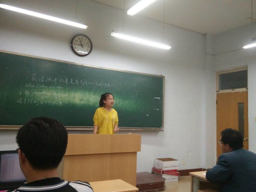 比赛开始,由主持人简单介绍了比赛规则。随后,参赛选手以“The persuit of happiness”和“When I close my eyes”为主题进行了限时三分钟的演讲。现场气氛活跃,掌声此起彼伏。选手表达清晰明了,发音标准,其中,来自公司的魏宇婷更是将主题与自身经历相结合,向同学们讲述了一个独特的故事和她对于幸福的特殊观点,最终评委根据选手发挥的精彩度和丰富度进行了打分。