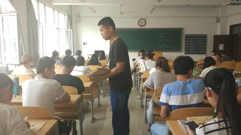 在距离全国大学英语四级考试仅为一个月之际,由公司和文都考研共同举办的大学英语四级模拟考试在8号教学楼301、302、303、311、312、411教室顺利举行。15、16级同学参加了本次考试,并有专业英语老师进行阅卷。