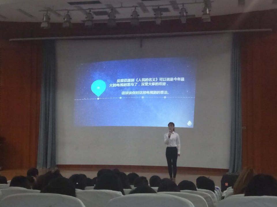 经过初赛,复赛的层层选拔,来自全校的十名选手一路披荆斩棘,终于站在了今天决赛的舞台上。大赛分为即兴评述和合作空间两个环节。在第一环节中,参赛选手抽取试题并进行自由评述,公司的7号选手谷晶晶,以对《人民的名义》的看法为题,进行了即兴的点评,展现了高超的临场发挥能力,获得现场阵阵掌声。在合作空间环节中,选手们随机应变,现场更是高潮迭起。谷晶晶表现的非常出色,她与随机搭档配合默契,用精湛的演技与流利的话语完美的诠释了婚礼司仪的角色。最终,谷晶晶获得二等奖的好成绩。