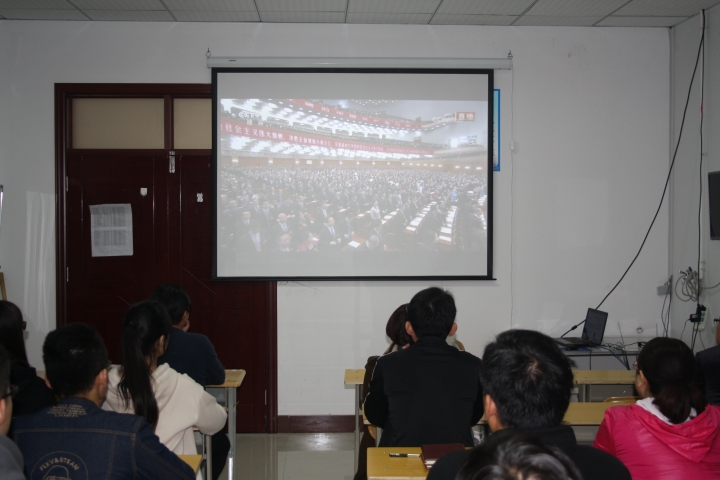 10月18日上午9:00,举世瞩目的中国共产党第十九次全国代表大会在北京人民大会堂隆重开幕。习近平总书记代表第十八届中央委员会向大会作了题为《决胜全面建成小康社会 夺取新时代中国特色社会主义伟大胜利》的报告。化学化工公司师生党员在10教301房间集中收看了十九大开幕盛况。师生聚精会神,边听边记。大家一致认为,党的十九大是在全面建成小康社会决胜阶段、中国特色社会主义进入新时代的关键时期召开的一次十分重要的大会,对于鼓舞和振兴全党全国各族人民继续推进全面建成小康社会、坚持和发展中国特色社会主义具有重大意义。习近平总书记的报告全面总结了党的十八大以来的工作,深刻分析了当前形势和任务,深入阐述了新形势下进行伟大斗争、建设伟大工程、推进伟大事业、实现伟大梦想的若干重大问题。报告主题鲜明,内涵丰富、立意高远、论述精辟,创造性地提出了一系列新思想、新观点、新目标、新举措,鼓舞人心,催人奋进。大家纷纷表示,要把学习和贯彻十九大精神作为一项重要的政治任务,以高度的政治责任感和饱满的学习热情,紧密联系工作实际,努力学习好、贯彻好、落实好十九大精神,进一步牢固树立政治意识、大局意识、核心意识、看齐意识,不忘初心、牢记使命,为建设以航空为主要特色的高水平应用型大学作出新的贡献,以优异的成绩向党的十九大献礼。