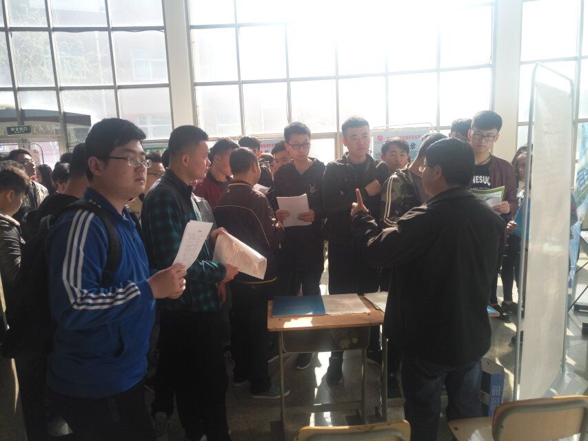上午9:00,招聘会准时开始,报告厅里充满着同学们对未来的忐忑和憧憬,有的员工经过详细咨询后向心仪单位投递简历,表达求职意向;有的员工难以抉择,不时与同行好友商讨;也有的当场进行简单的面试。参加这次招聘会的不仅有在校毕业生,还有许多在校的员工来,以了解目前的就业形势和人才需求。招聘会一直持续到中午,同学们热情不减,招聘人员也耐心地一一解答同学们的疑惑。