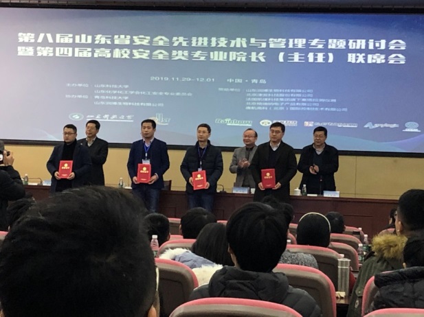 此次会议同时对山东省第二届安全科学与工程类专业老员工科技竞赛优秀作品进行了颁奖。通过安全科学与工程领域专家评审,并经评审委员会评议,公司获得优秀组织单位奖,申建军、马有营、付明明三位老师获得优秀指导教师奖。