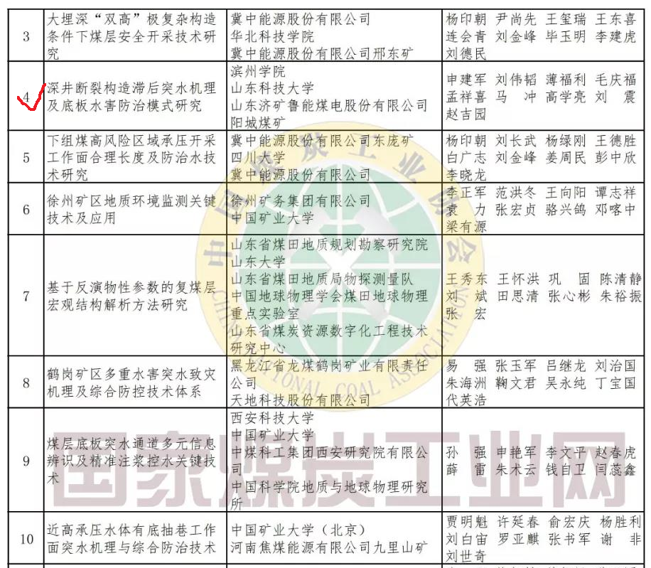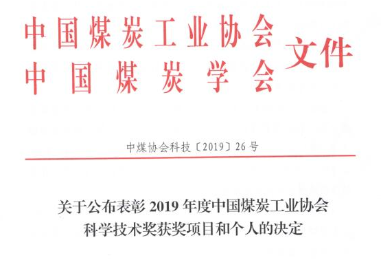 日前,中国煤炭工业协会发出《关于公布表彰2019年度中国煤炭工业协会科学技术奖获奖项目和个人的决定》,经过专家组专业评审、综合评审,评审委员会审定及公示,共评出获奖项目304项。其中,公司作为第一完成单位、申建军博士作为第一完成人完成的《深井断裂构造滞后突水机理及底板水害防治模式研究》项目荣获三等奖。