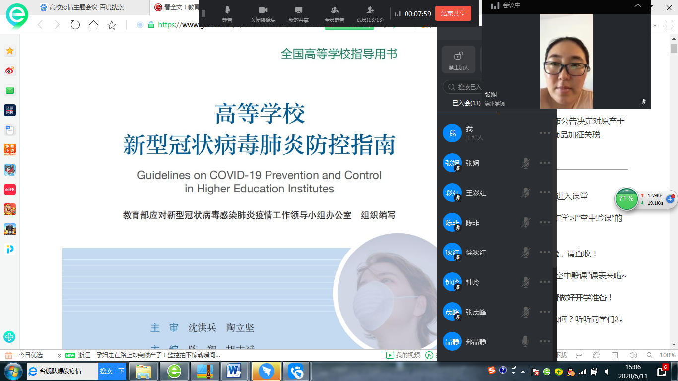 为进一步做好新冠肺炎疫情防控工作,提高公司教职员工防控知识和应急技能水平,5月12日下午三点,公司举行疫情防控线上专题培训会议,为员工安全有序返校及返校后的应急处置做好准备。