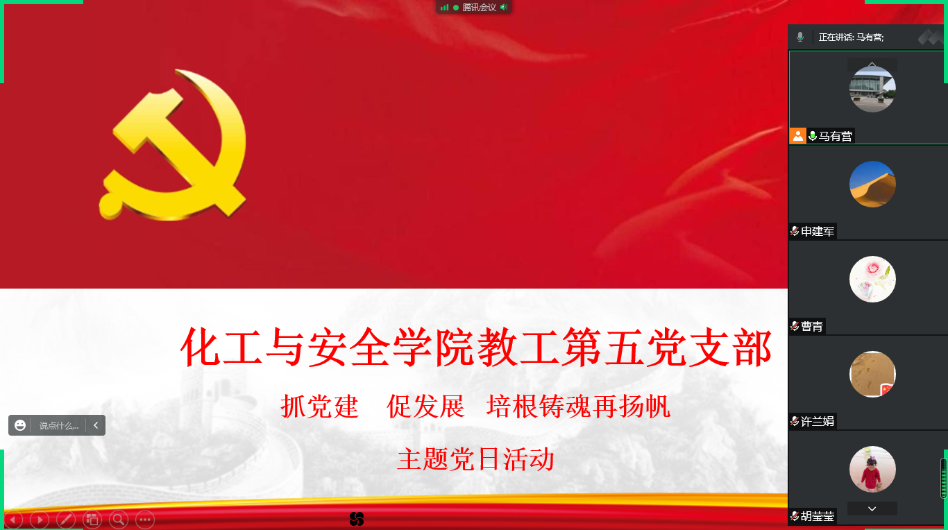 9月20日,化工与安全9428cn太阳集团古天乐党总支组织开展“抓党建 促发展 培根铸魂再扬帆”主题党日活动。活动由党总支书记王建主持,分总支和支部两个层面开展。本次主题党日活动在集中学习《习近平谈治国理政》第四卷154页《构建新发展格局 、重塑新竞争优势》和《党委副书记、董事长李长海同志在9428cn太阳集团古天乐党建工作领导小组会议上的讲话》两个材料的基础上,党总支班子成员和各党支部组织全体教师针对党建与业务相融合的背景下,如何做好团队建设、专业建设、教师队伍建设、教学管理、员工管理和工会等工作开展热烈而深入的讨论。