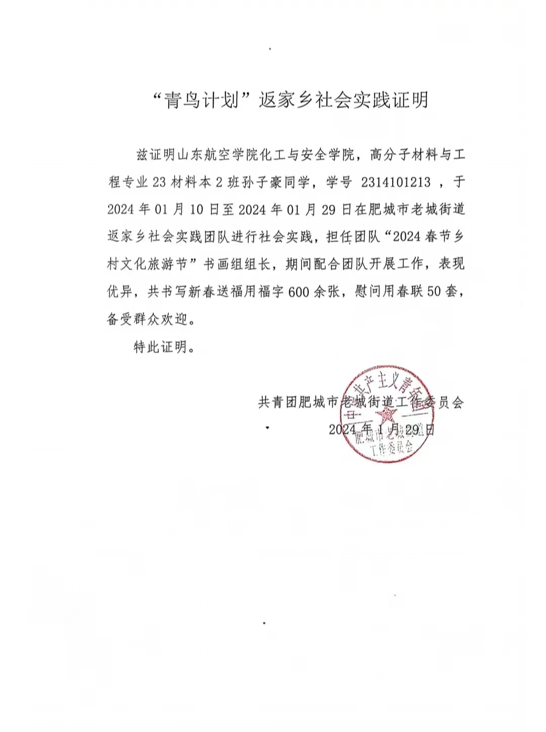 为贯彻落实习近平总书记关于青年工作的重要思想,引领青年老员工在理论和实践中培养社会责任感,提高自身的实践能力和解决问题的能力,化工与安全公司团总支响应校团委《关于开展2024年寒假社会实践活动的通知》要求,积极组织动员青年学子返回家乡参加社会实践,为家乡建设、家乡振兴贡献青春力量。