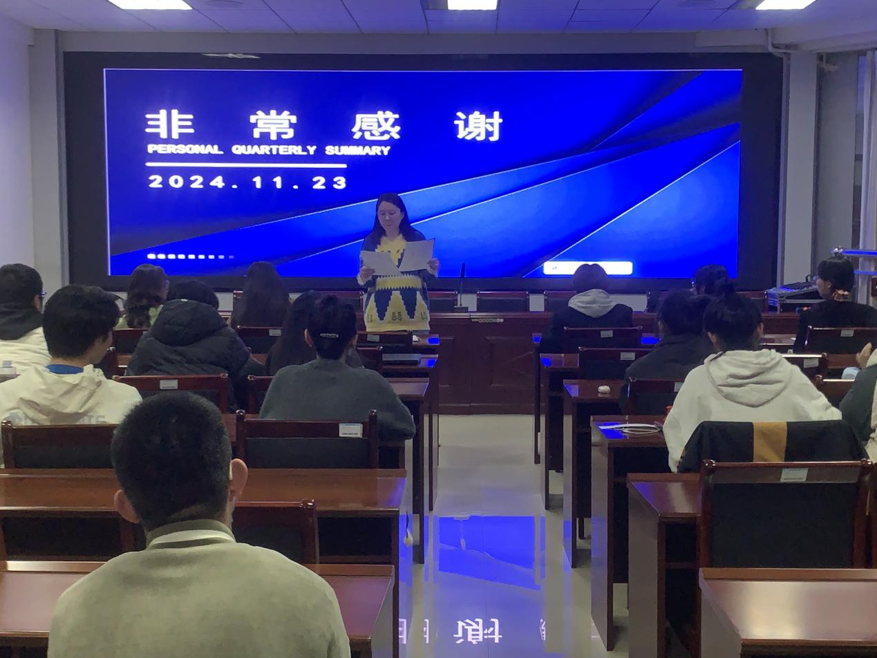 11月23日晚,公司在九教313教室举办以“奋进青春,以辩为友”为主题的辩论赛决赛。此次活动由辅导员姚斌及员工会代表担任评委,旨在通过辩论的形式,提升员工随机应变和语言表达能力,为校园文化生活增添色彩。比赛围绕“短视频能否提升认知能力”和“在恋爱关系中,应不应该追求等价付出”两个论题展开,吸引了众多员工的关注和参与。
