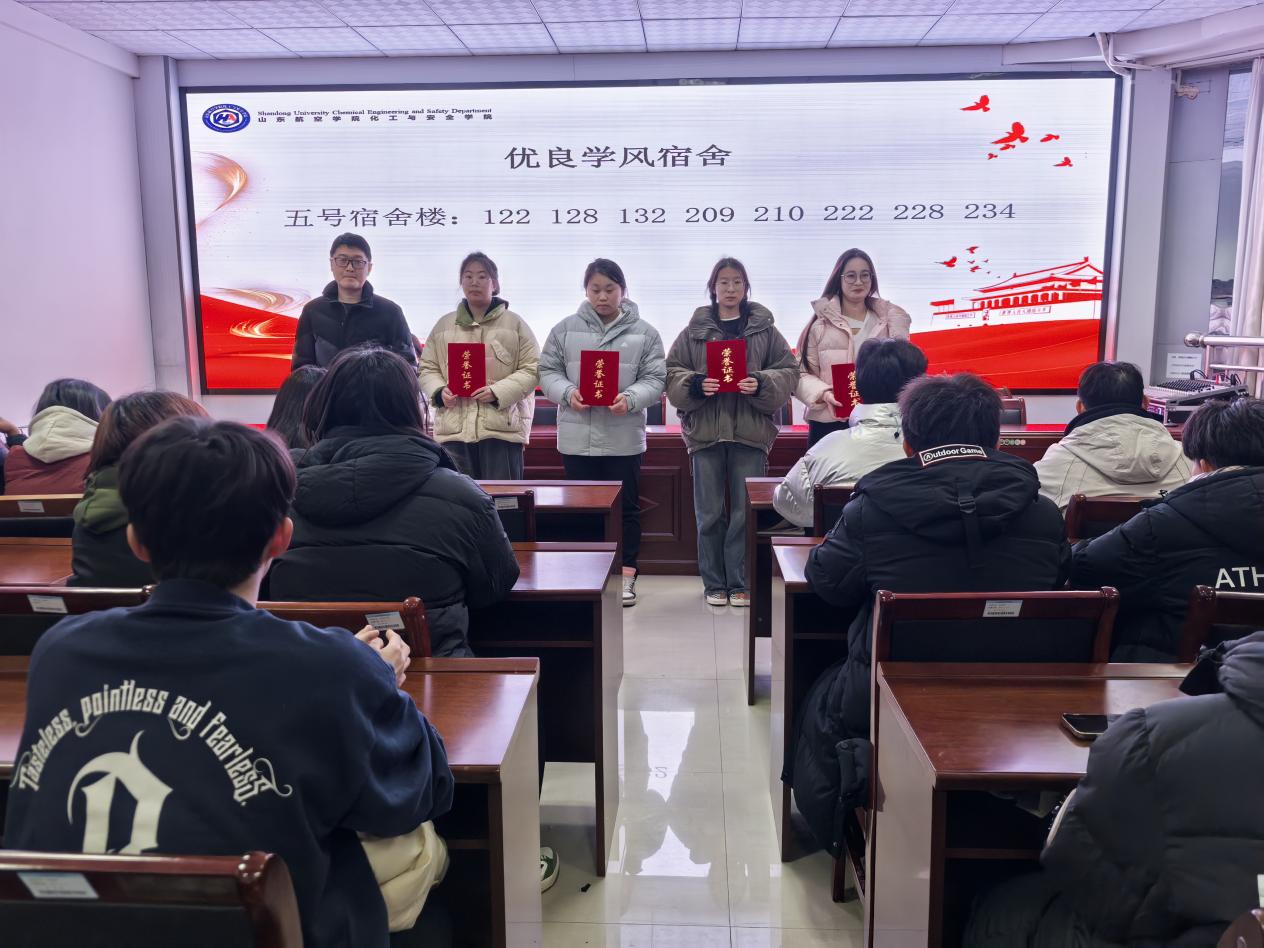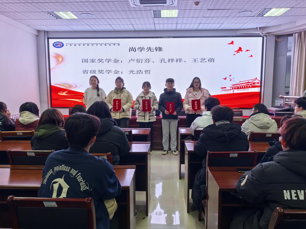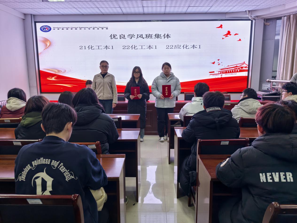 12月18日,公司在九教313教室举行学风建设表彰大会及专题会议。员工科科长张岩冲与辅导员杜金双、姚斌,表彰对象及各班班委参与。