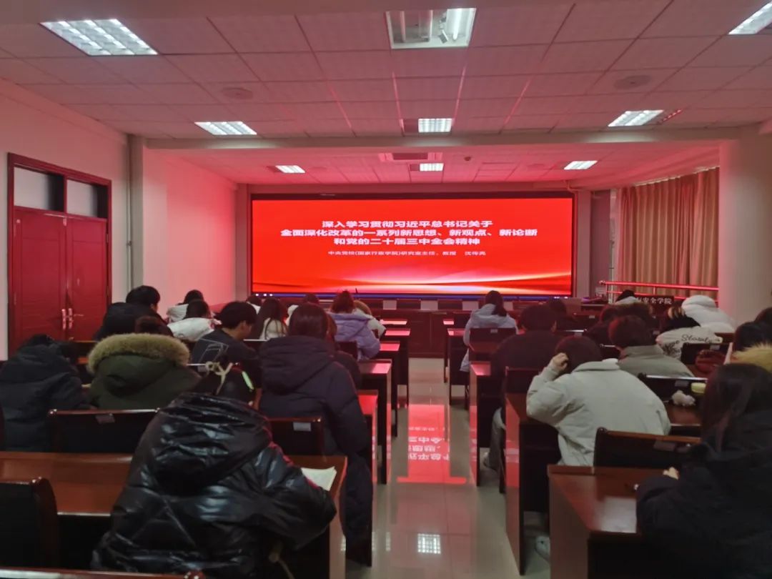 在深入学习贯彻习近平总书记关于全面深化改革的一系列新思想、新观点、新论断方面,沈教授从形成条件、丰富内涵、理论意义和实践成效等多个角度进行了全面解读。他强调,改革开放是决定当代中国命运的关键一招,也是决定实现“两个一百年”奋斗目标、实现中华民族伟大复兴的关键一招。同时,他还详细讲解了坚持党的全面领导、坚持以人民为中心、坚持守正创新、坚持以制度建设为主线、坚持全面依法治国、坚持系统观念等重大原则。