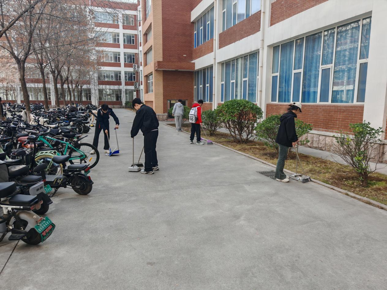 校园清洁行动:高分子材料与工程专业2024级本科1班团支部组织团员对校园公共区域进行清洁,清理垃圾、整理共享单车,为营造整洁校园环境贡献力量。