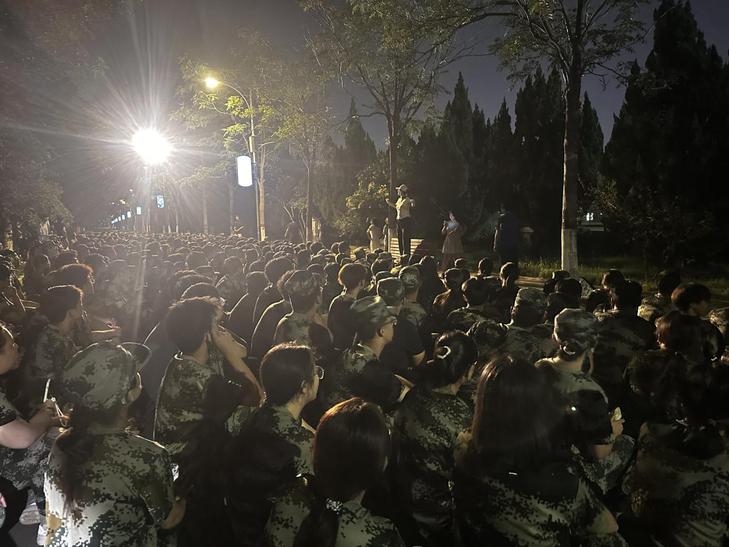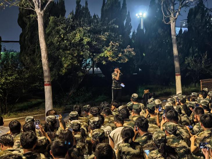 自9月8日晚起,公司2025级新生在军训场上展开了一场“只闻歌声不见舞台”的特殊训练,备战即将举行的校军歌红歌比赛。